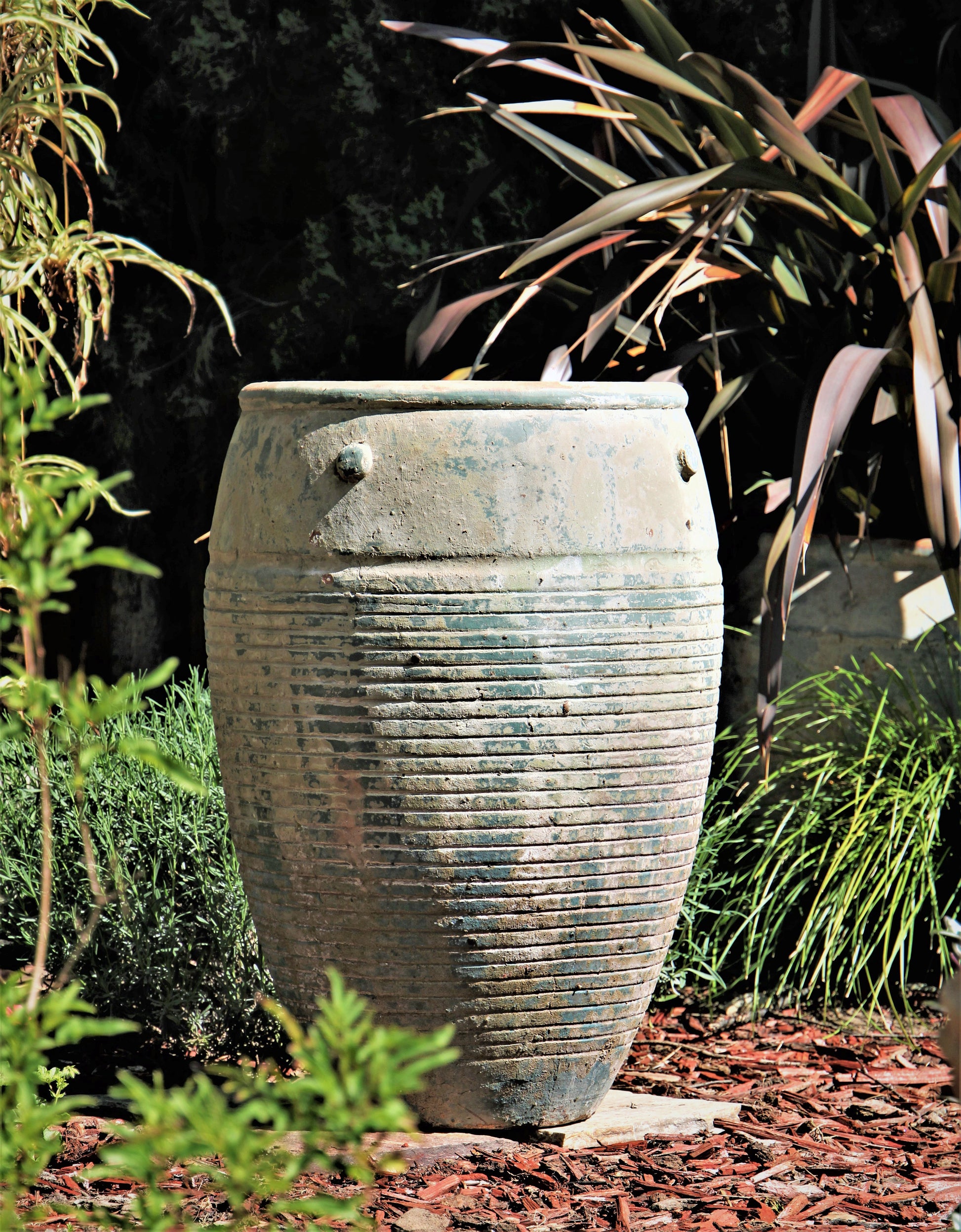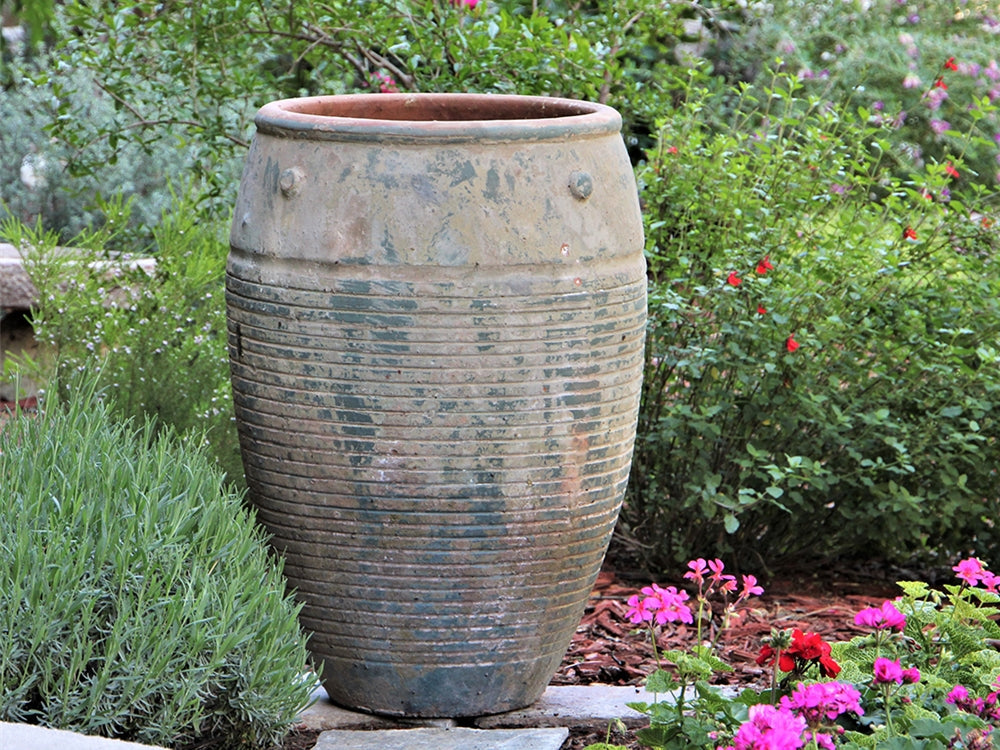 Embodying ancient Grecian traditions, the Jar De Santorini Large Planter in Atlantis Sky finish adds a timeless vintage look that adds a touch of Mediterranean flair to your outdoor space. This tall planter adds vertical interest to any garden or patio and the large capacity makes it the perfect base for a variety of hanging plants and shrubbery.